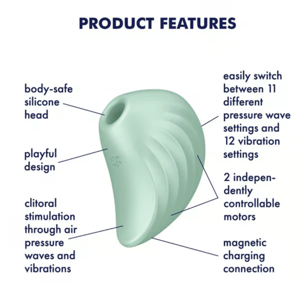 The Satisfyer Pearl Diver in a playful shell design provides sensual clitoral stimulation. 2 motors, the combination of pressure waves and vibration as well as the compact design make it an ideal companion for on the go.